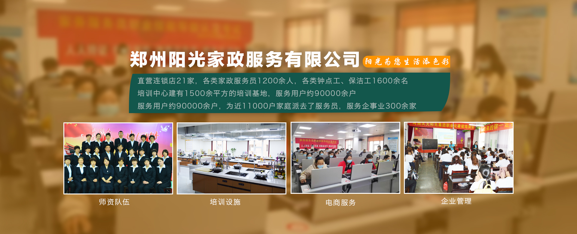 鄭州陽光家政服務(wù)有限公司成立于1998年,是鄭州市第 一家經(jīng)工商登記的家政服務(wù)企業(yè),是以家政服務(wù)、家政培訓、社區(qū)服務(wù)、社區(qū)養(yǎng)老、托幼護理、清洗保潔為一體的社區(qū)生活服務(wù)集成商。公司有直營連鎖店21家,各類家政服務(wù)員1200余人,各類鐘點工、保潔工1600余名。鄭州陽光家政商學院建有1500余平方的培訓基地,···